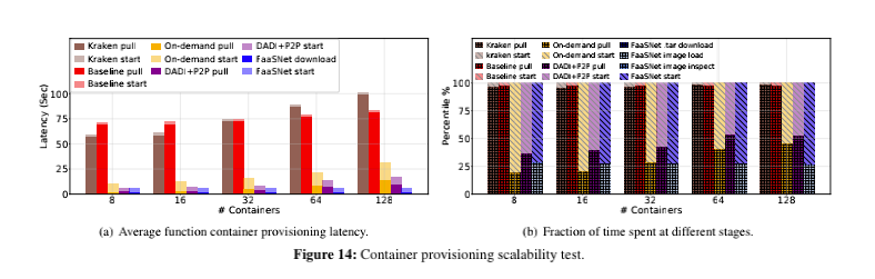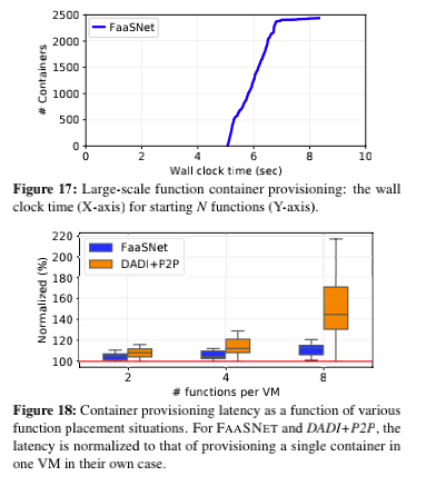 FAASNET提供了一个具体的解决方案,通过实验评估表明,可以再几秒钟内启动成千上万的大型函数容器,具有很好的弹性。