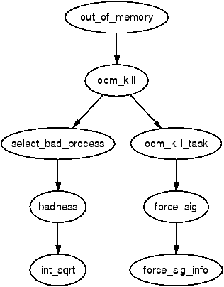 一旦选择了一个任务,就会再次遍历该列表,并且每个与所选进程(即它们是线程)共享相同mm_struct的进程都会被发送一个信号。如果进程具有CAP_SYS_RAWIO功能,则发送SIGTERM以使进程有机会干净地退出,否则发送SIGKILL。